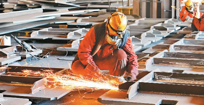 图为中铁山桥集团有限公司的工人在钢桥钢结构生产车间工作。(新华社记者 杨世尧摄)
